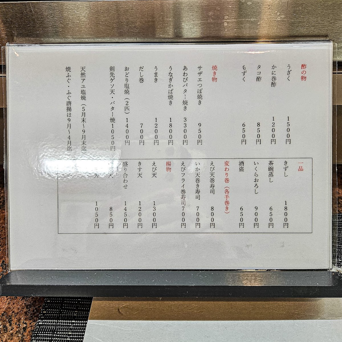 Hanato Sushi Menu